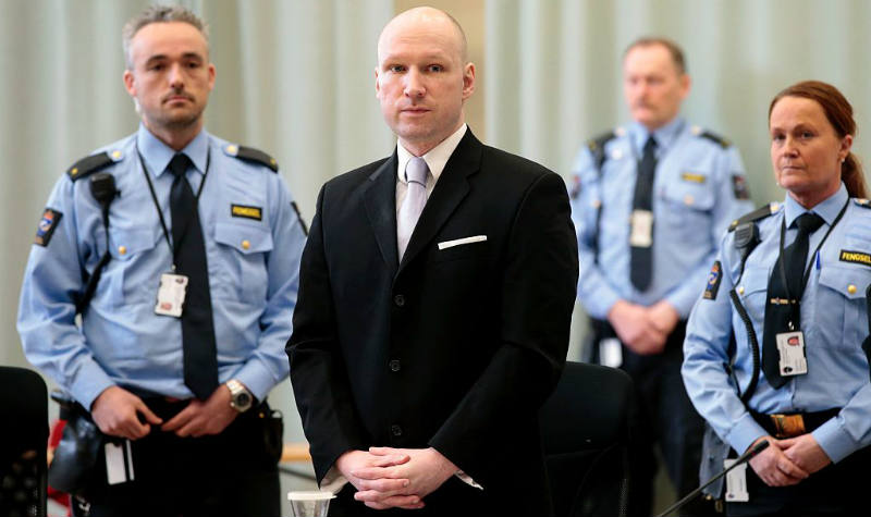 Breivik, który w 2011 r. zabił 77 osób (69 na wyspie Utoya i 8 w Oslo), przetrzymywany jest w pilnie strzeżonym więzieniu Skien (morderca zajmuje całe skrzydło więzienia). Breivik odsiaduje 21-letni wyrok i jak dotąd był on od pozostałych więźniów izolowany. Ścisłej kontroli poddawana jest też od 5 lat korespondencja Breivika, w celu uniemożliwienia mu szerzenia ekstremistycznych idei.