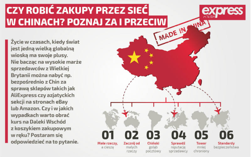 Pamiętaj o tym, że towary sprowadzane bezpośrednio z Azji zwykle nie posiadają atestów bezpieczeństwa Unii Europejskiej. Dlatego warto bardzo ostrożnie rozważyć zakup towarów z dziedziny takiej, jak sprzęt elektroniczny, zabawki czy kosmetyki. Nie ma bowiem gwarancji, że zostały one wnikliwie sprawdzone przed tym, by nie zaszkodzić zdrowiu twoim i twoich bliskich.