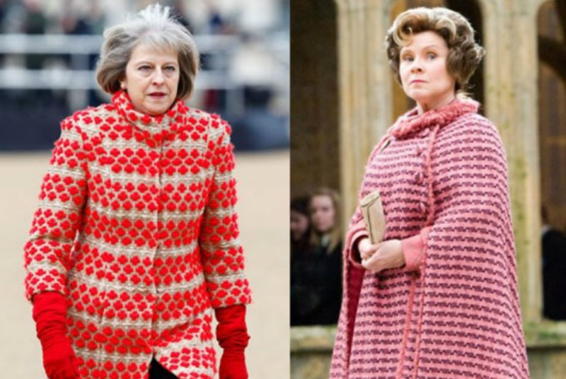 W czasie wizyty w Nishkam Primary School w Birmingham premier Theresa May przyznała się do tego, że przeczytała wszystkie części „Harry'ego Pottera” i stwierdziła, że "są bardzo dobre”. Zapytana następnie przez dziennikarza z „Daily Telegraph” o to, z jaką postacią ze wspomnianych książek o czarodzieju utożsamia się najbardziej, Theresa May wpadła w popłoch.