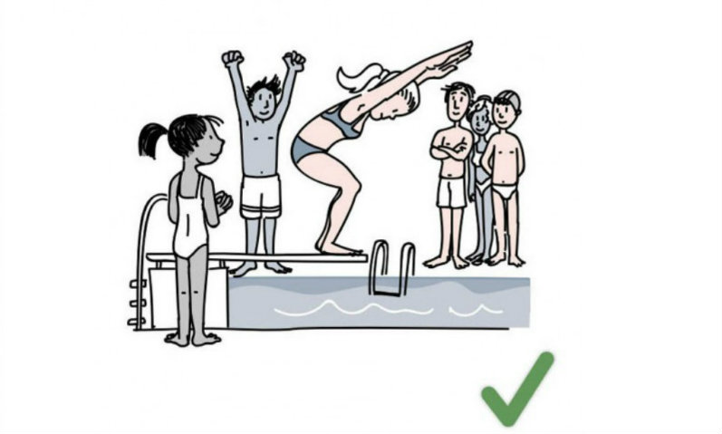 Zdecydowanie nie OK jest bicie dzieci i molestowanie kobiet. Wśród obrazkowej wersji prawa i obyczajów można też zauważyć sugestię, że każda religia jest dobra, tak samo czytelny jest przekaz, że z basenów mogą korzystać tak kobiety jak i mężczyźni.