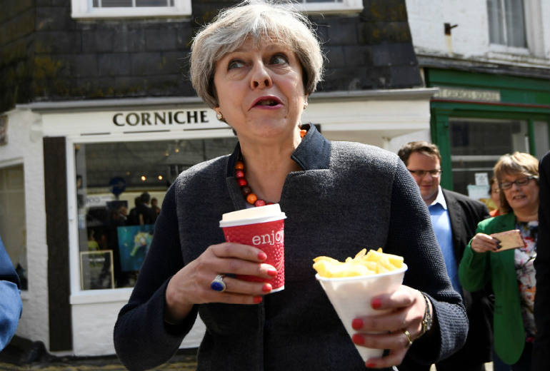 Nie inaczej było podczas ostatniej wizyty premier w Kornwalii. Theresa May udała się do najbardziej wysuniętego na południowy-zachód hrabstwa Anglii w ramach kampanii wyborczej, gdzie chciała przekonać mieszkańców do zagłosowania 8 czerwca na Partię Konserwatywną. W jednym z miasteczek Theresa May, w ramach ocieplania swojego wizerunku, miała zjeść z lokalnym politykiem porcję tradycyjnych, angielskich frytek.