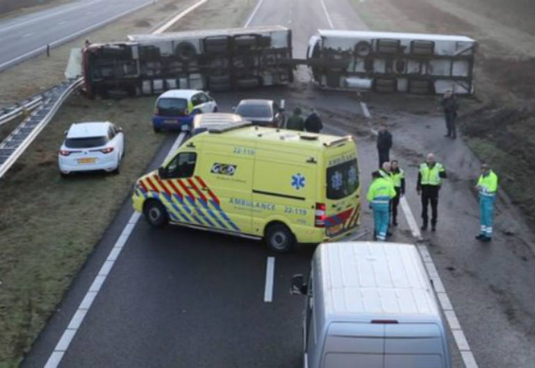 Do pierwszego incydentu doszło w sobotę około godz. 7:00 rano, na autostradzie A67, w Steensel w Brabancji Północnej (południe Holandii), gdzie kierowany przez Polaka samochód ciężarowy przewrócił się na środku drogi. Pojazd na wiele godzin zablokował autostradę i aż trudno uwierzyć w to, że w wypadku nikt poważniej nie ucierpiał. Po zatrzymaniu 44-letniego kierowcy okazało się, że jest on pijany. Mężczyzna trafił prosto do aresztu, ponieważ nie wymagał hospitalizacji.