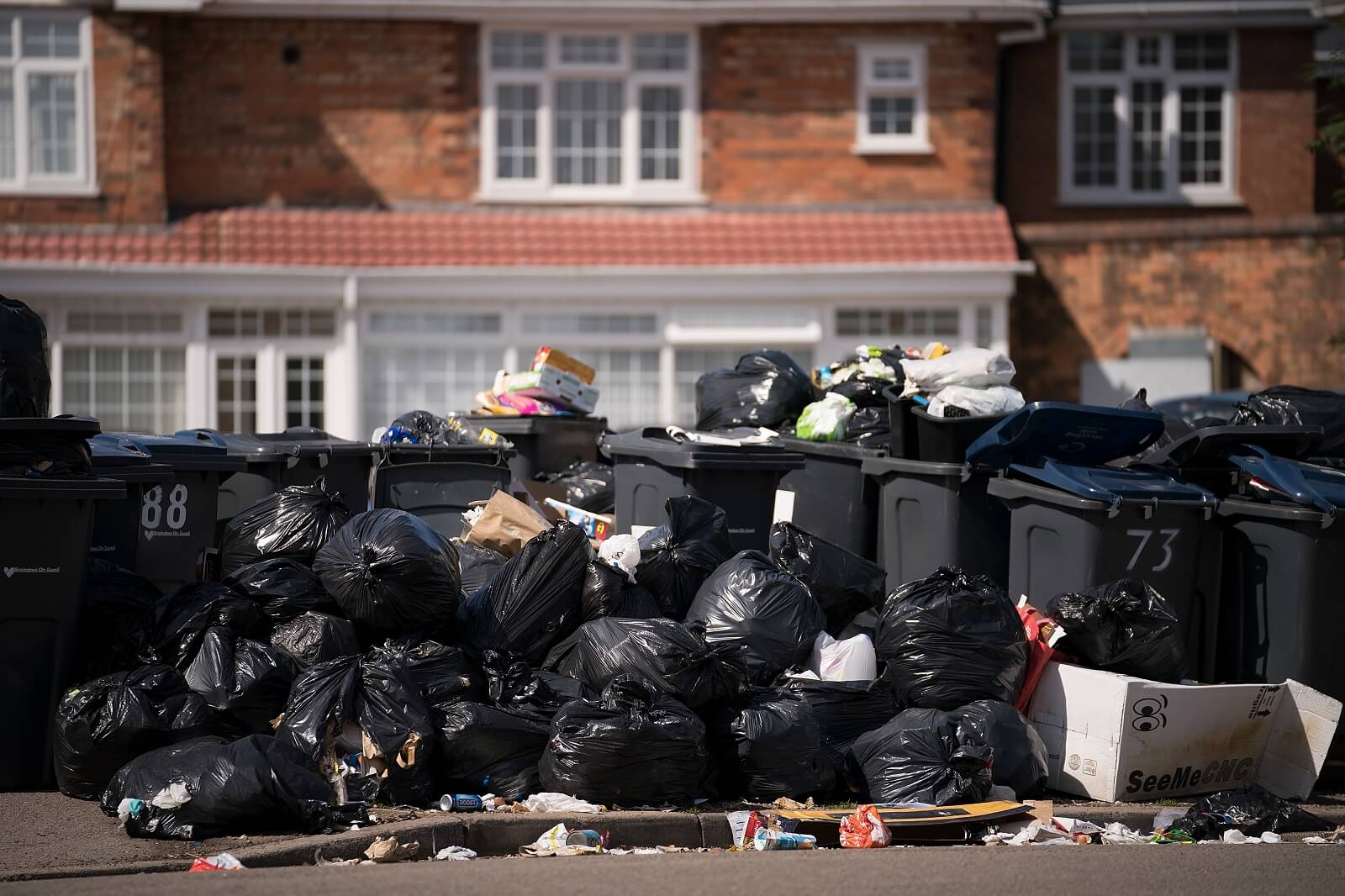 W całym Birmingham pojawiły się doniesienia o przepełnionych koszach na śmieci i workach z odpadami, które piętrzą się na ulicach miasta. W wyniku tego nasila się też plaga szczurów.