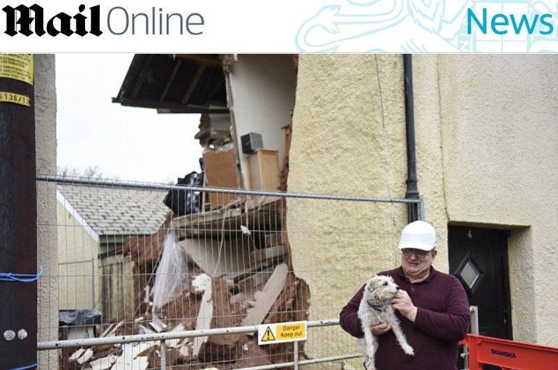 Bezrobotny mężczyzna mieszkał w tym domu od 8 lat wraz ze swoim psem. Może mówić o dużym szczęściu, że w momencie katastrofy znalazł się poza swoim domem. Trzęsienie ziemi, które w miniony weekend nawiedziło Wielką Brytanią miało siłę 4,4 w skali Richtera, a jego epicentrum znajdowało się niedaleko Swansea w Cwmllynfell.