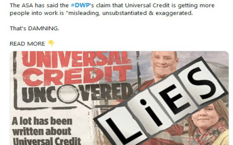 Decyzja organu nadzorczego Advertising Standards Authority dotycząca kampanii informacyjnej zachwalającej system zasiłków Universal Credit to poważny cios dla ministerstwa Department for Work and Pensions. ASA stwierdziła bowiem, że kampania wprowadza ludzi w błąd i, sądząc po licznych, negatywnych doświadczeniach mieszkańców Wysp, w nieprawdziwy sposób pokazuje sposób funkcjonowania zasiłku powszechnego.