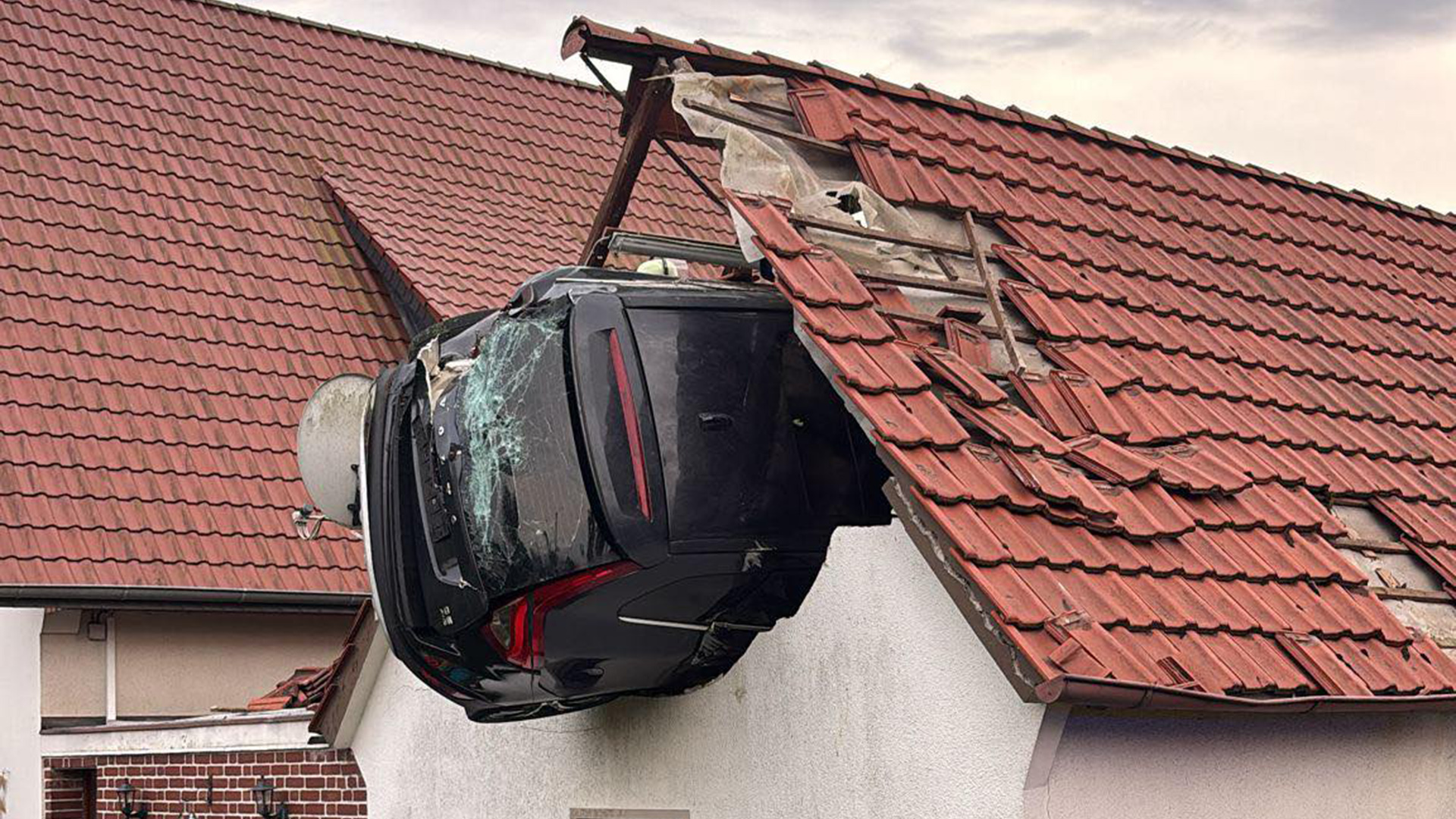 Okoliczni mieszkańcy mówią, że usłyszeli głośny hałas i wybiegli z domów, aby zobaczyć co się stało. Wszyscy byli w szoku, gdy zobaczyli samochód wbity w dach stodoły.